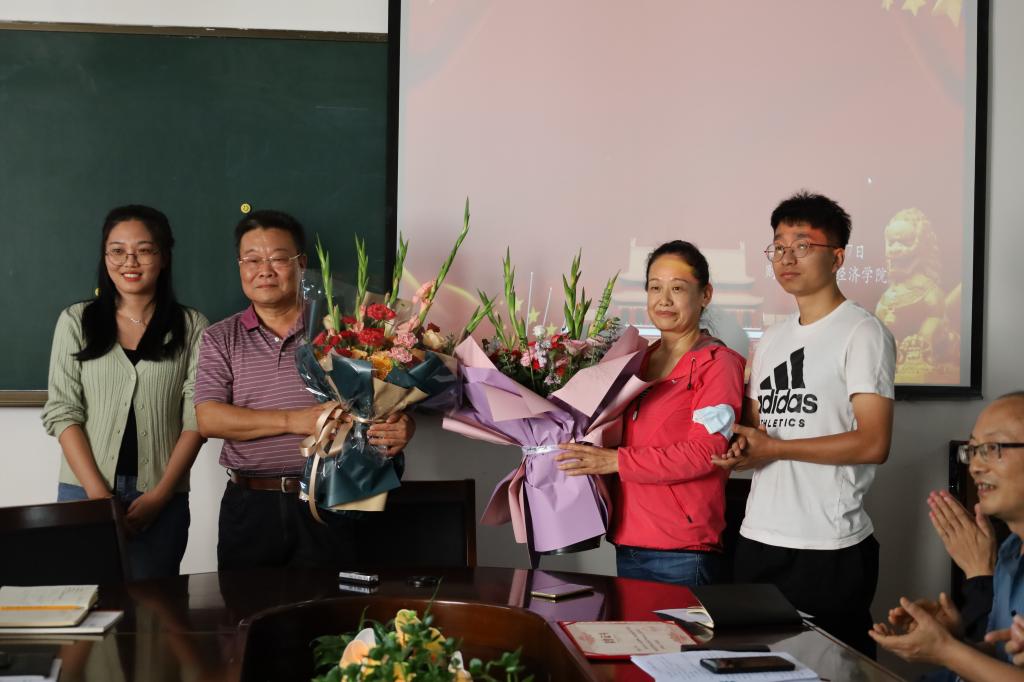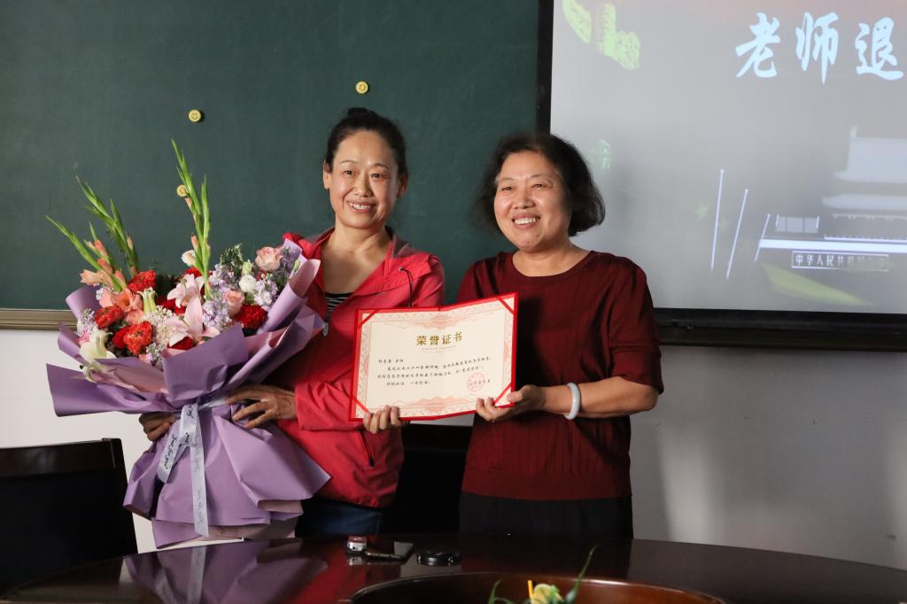 峥嵘岁月话感恩,不忘初心献余热。荣退仪式在工会主席赵左丽老师的主持下拉开帷幕。在欢快的乐曲和热烈的掌声中,两位新入职青年教师分别向谭老师、郭老师赠送鲜花,公司领导为谭老师、郭老师颁发了从教三十余年荣誉证书。公司党委书记高岳在致辞中回顾了两位教师三十余年的从教经历,对他们为公司学科发展、人才培养、专业建设等方面做出的贡献表示衷心感谢;两位教师作为公司、学科、专业发展的见证者和开拓者,他们筚路蓝缕、艰苦奋斗的精神和德高为师、身正为范的品质激励着后辈们砥砺前行;两位教师虽已退休,但仍是公司引以为傲的教师,“桑榆非晚,微霞满天”,希望他们能够“退休不退志、离岗不离心”,继续关心和支持公司工作,为公司发展建言献策,为立德树人发挥余热。