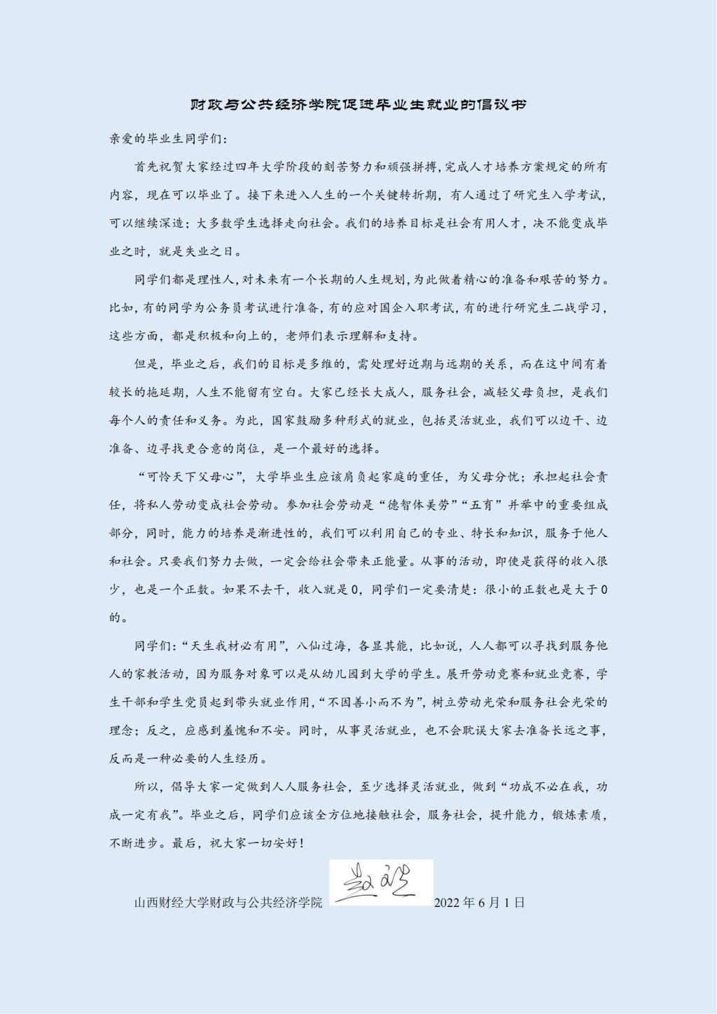 suncitygroup太阳集团促进毕业生就业的倡议书