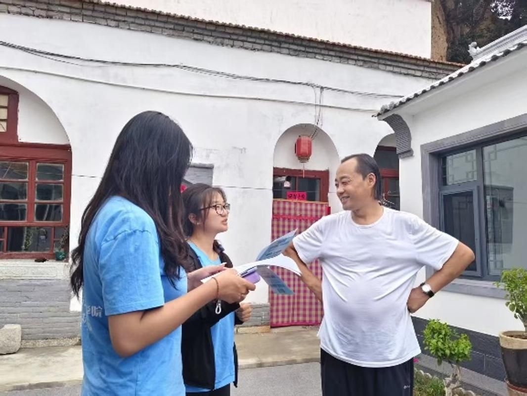 7月4日上午,实践队先赴涌泉乡太行山酒业,调研古法酿造与现代化生产融合的产业发展;后至丰州镇太行沃土公司,了解羊肥小米特色农业产业,深度探访乡村特色产业发展路径。下午,实践小队在蟠龙镇砖壁村调研乡村产业以及农民增收致富情况。在与村民的交流中,实践队得知:村里大部分居民的收入都是依靠农家乐和红色旅游,当地政府也对这一系列产业给予大力支持。随后,实践队在韩北镇王家峪村调研革命文物开发利用,并开展“晋税先锋”宣讲,普及税收知识,发放宣传手册。