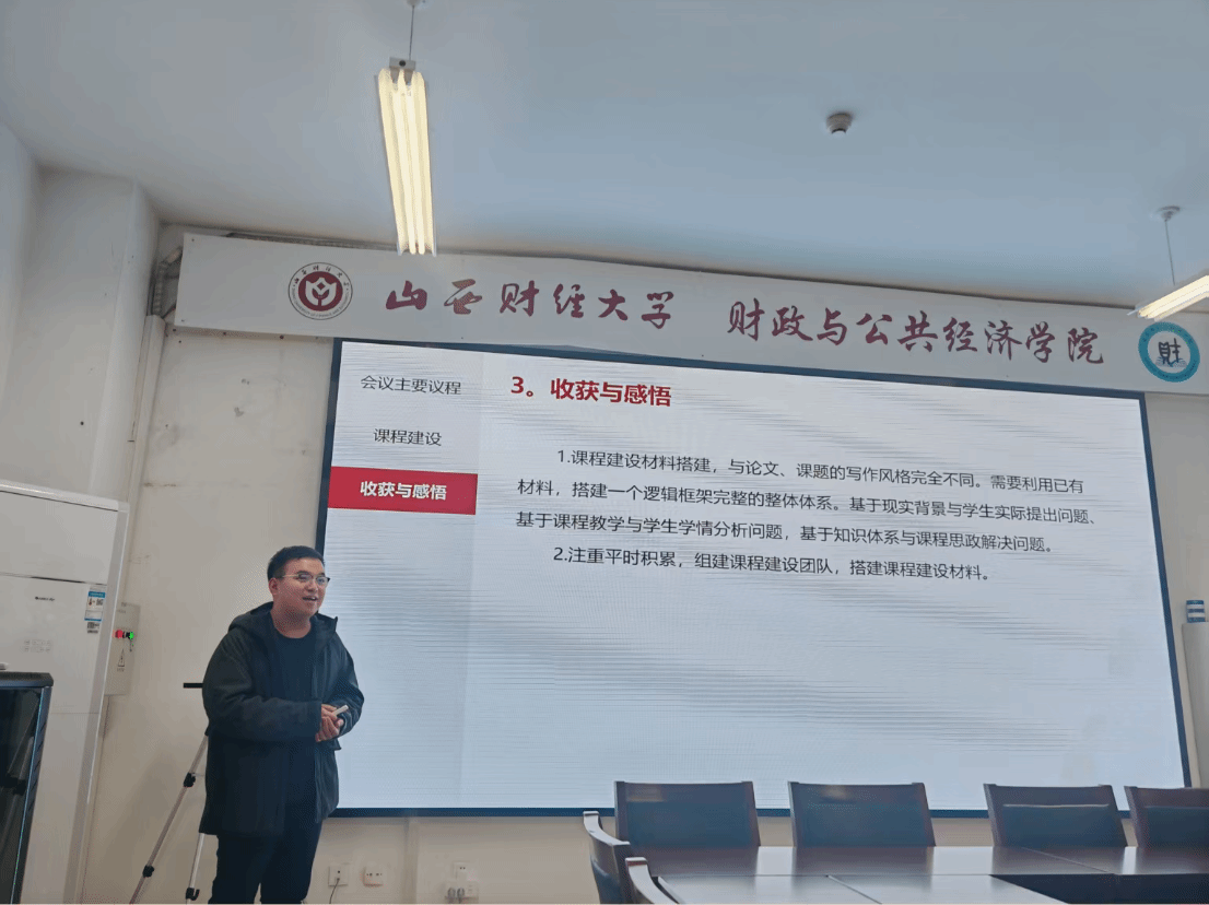 2025年10月21日,suncitygroup太阳集团任星宇老师于公司会议室,为全院教师进行了题为“全国高校财政学教学研究会2025年年会的参会体会”的讲座。